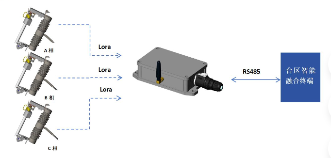 通過(guò)專用傳感器采集熔斷器的位置信號(hào),精準(zhǔn)判斷熔斷管的跌落(熔斷)或合閘狀態(tài)。一旦檢測(cè)到熔斷管跌落等異常情況,裝置會(huì)自動(dòng)觸發(fā)告警信號(hào),通過(guò)LORA無(wú)線通信方式上傳至集中器,再由集中器通過(guò)RS485接口上報(bào)至主站系統(tǒng),實(shí)現(xiàn)故障狀態(tài)的快速反饋,讓運(yùn)維人員第一時(shí)間掌握設(shè)備情況。